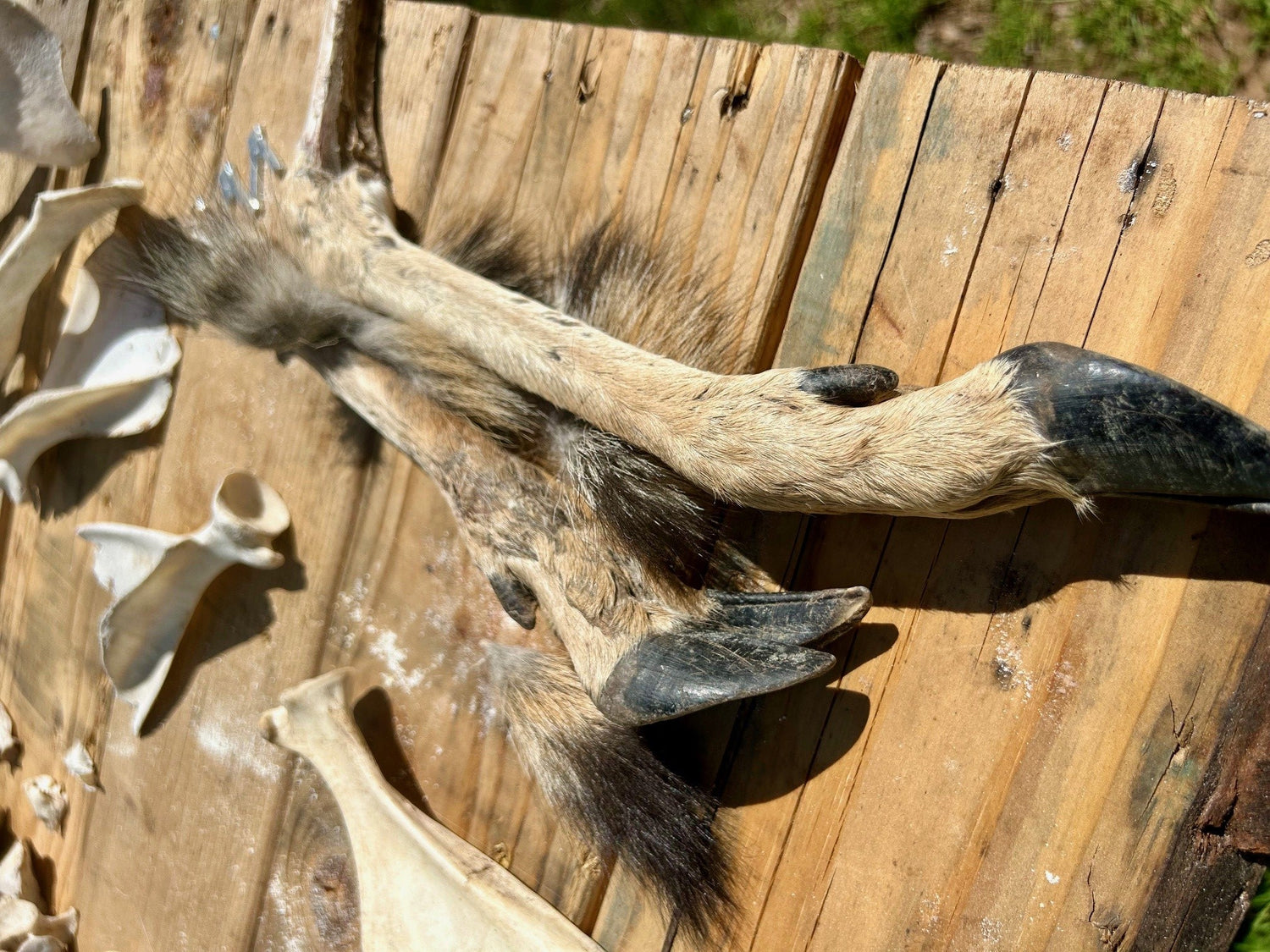We use as much of the animals as we can. ALL the bones, sinew, pelts, organs (wet specimens), and meat for pet food (if found fresh enough and usually only deer or squirrel to be safe).