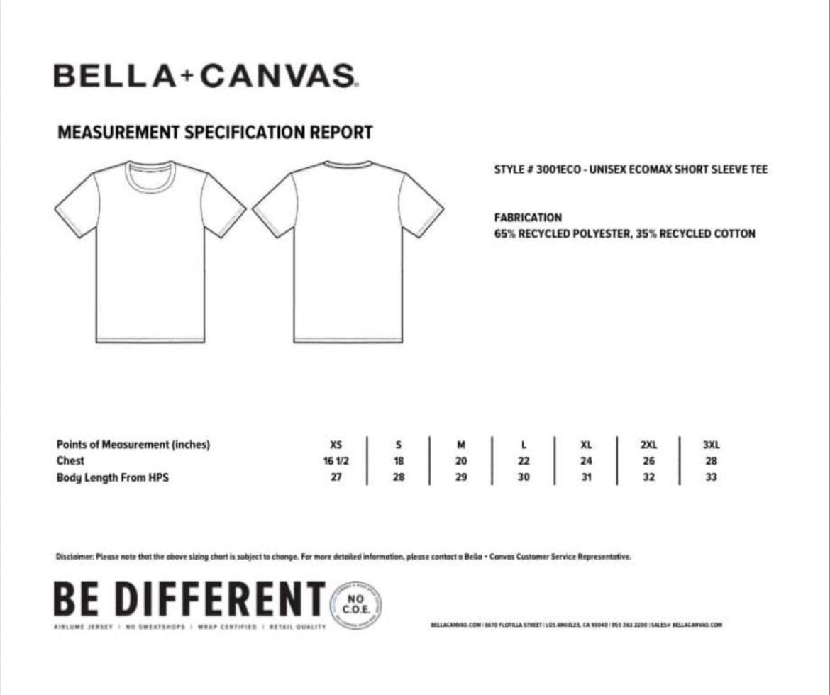 Block printed with speedball screen-print ink and heat set on Bella + Canvas 3001ECO Unisex ECOmax T-Shirt.