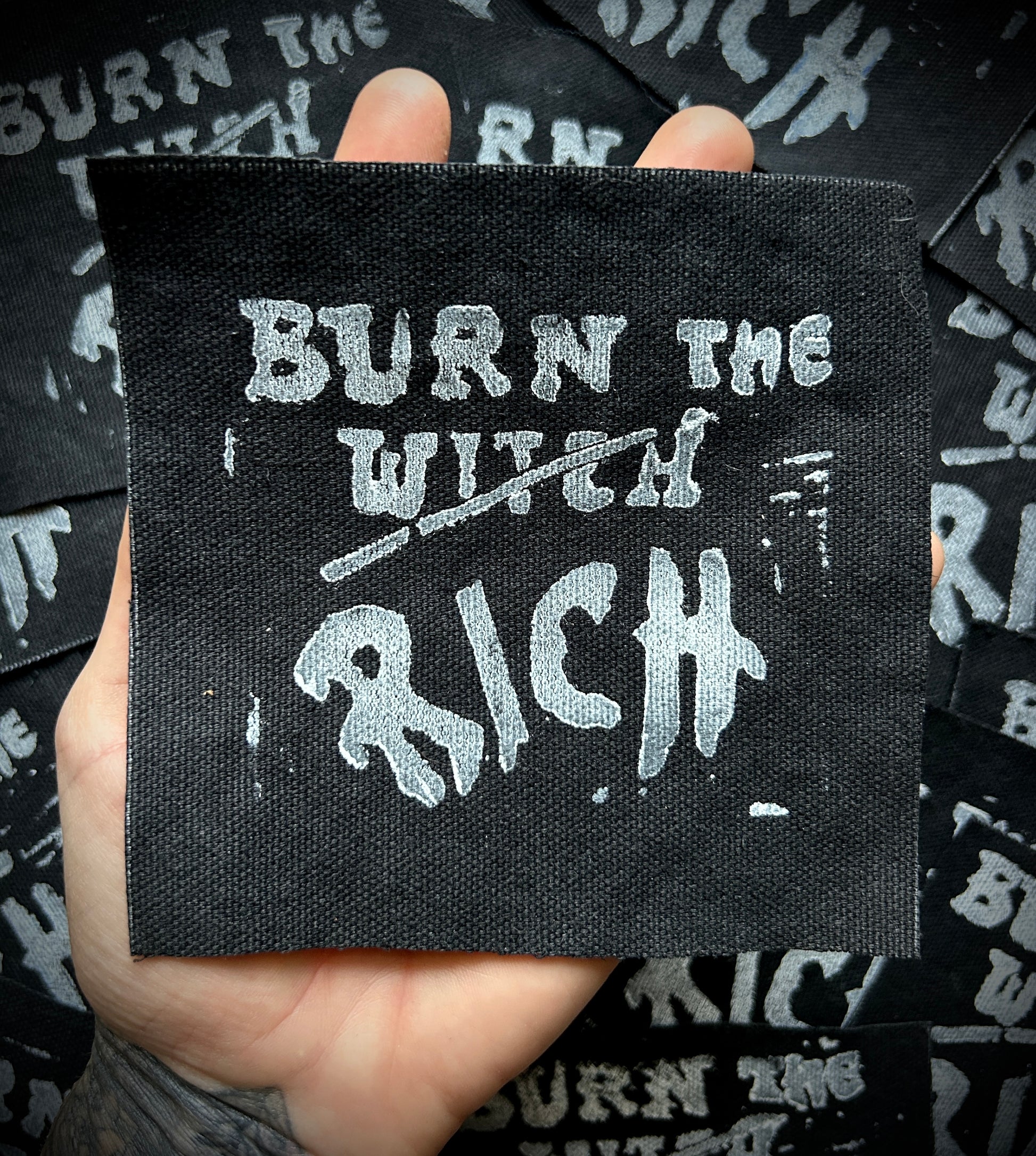 Handmade block printed on black 100% cotton denim. Pre-washed, non-stretchy, with an extra fabric border perfect for sewing on jackets, bags, etc.
