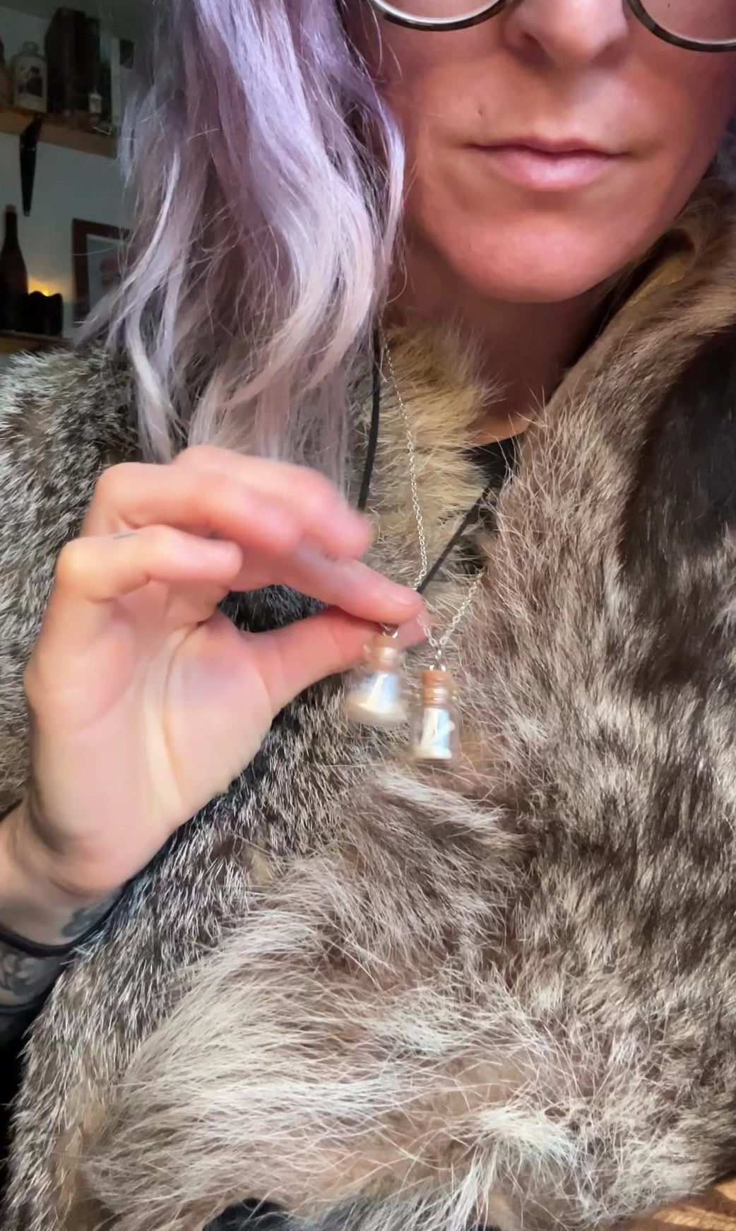 Curio bottle with bones pendant