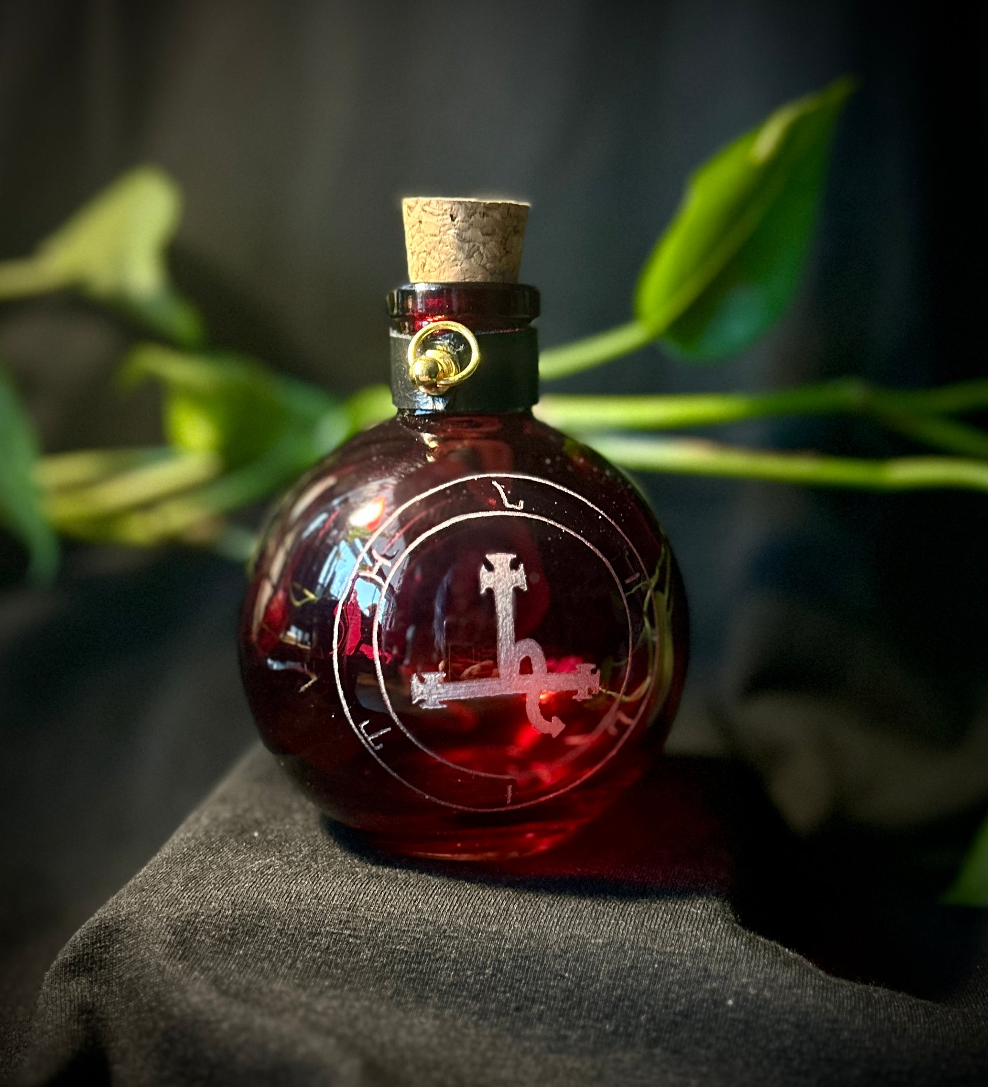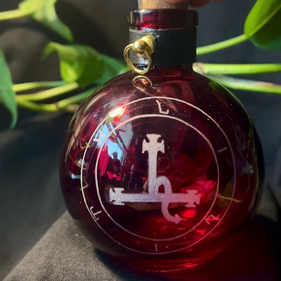 Hand-etched using a dremel and diamond tip for engraving directly into the glass. Perfect for an alter shelf, essential oils, beverages, or anything sacred or special to you!