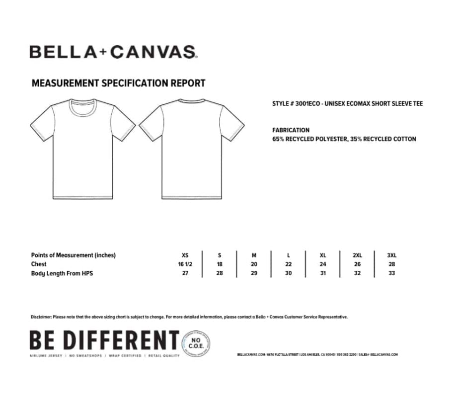 Block printed with speedball screen-print ink and heat set on Bella + Canvas 3001ECO Unisex ECOmax T-Shirt.