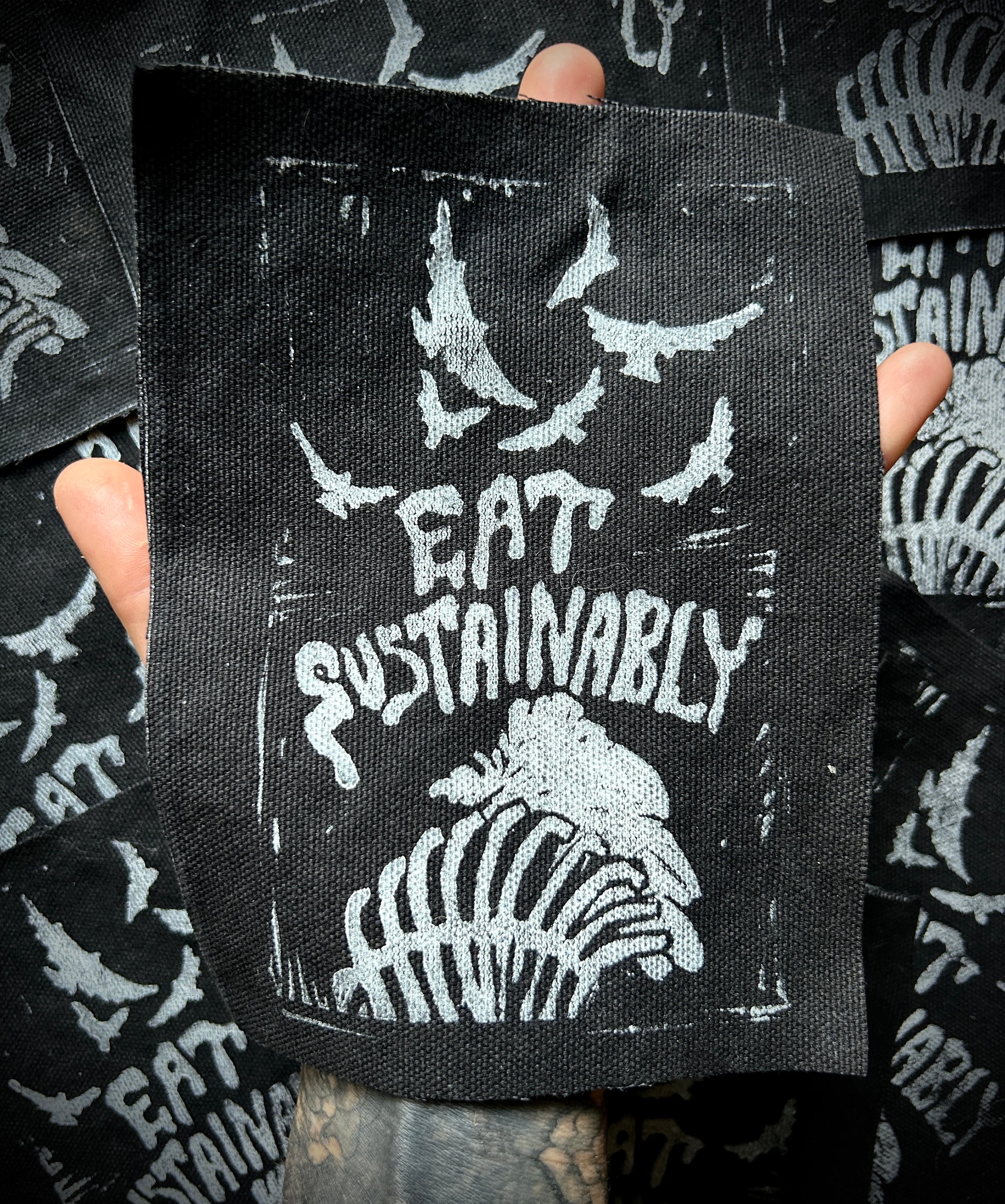 Handmade block printed on black 100% cotton denim. Pre-washed, non-stretchy, with an extra fabric border perfect for sewing on jackets, bags, etc.